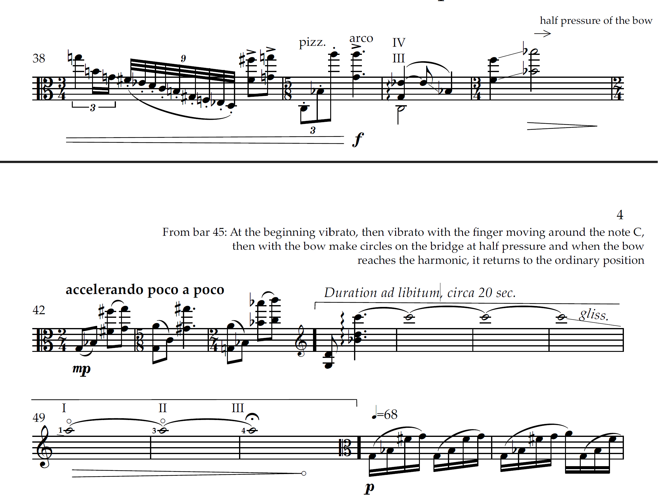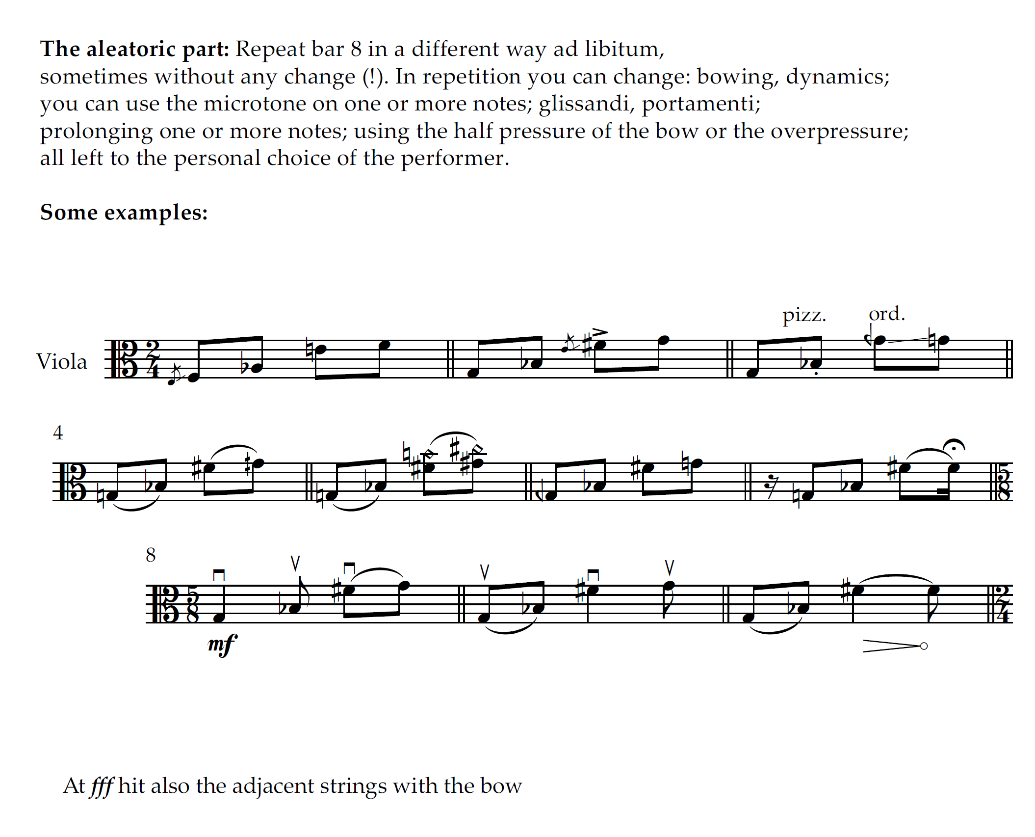 I chose a solo instrument that has limited possibilities of producing harmony, therefore I worked mainly with a single melody line. The composition is focused on showing different nuances of the same motive and using extended techniques and microtones.